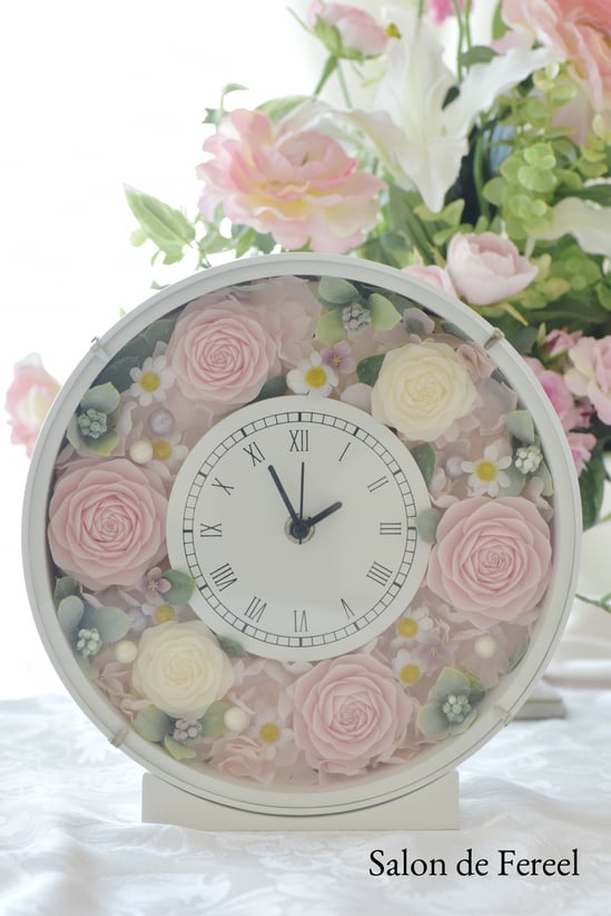 さて、先日ソープカービングの花時計をご依頼いただき、優しいお色目をご希望されたので淡いピンクと白でふんわりしたイメージで仕上げてみました。