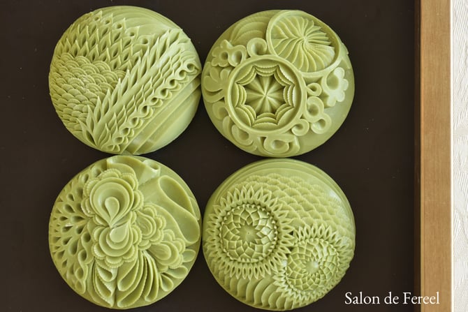 綺麗なクラシカルなお色のソープがあったのでレリーフを彫って並べてみました。
