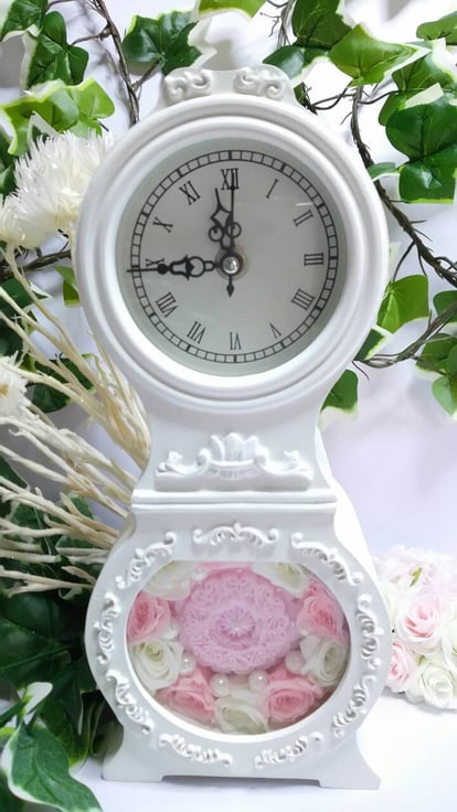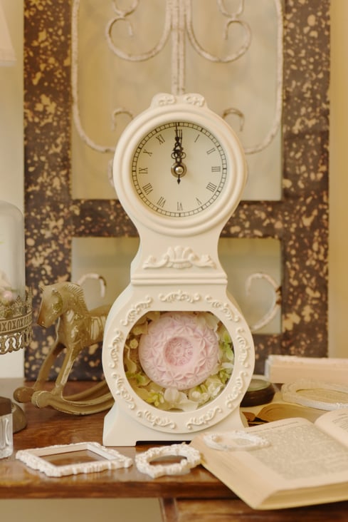レリーフ彫りを時計のフレームに入れてもらっています。