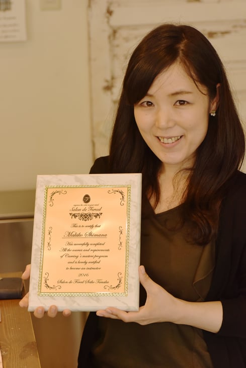 フルーツ・ソープ各50レッスン、計100レッスンを修了された大江さんに、先日ディプロマを発行させていただきました。