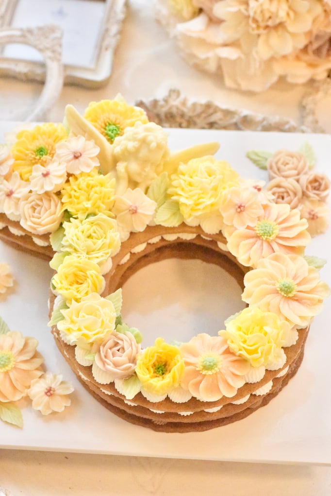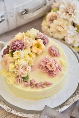 バタークリームを絞って作るフワラーケーキ♪
