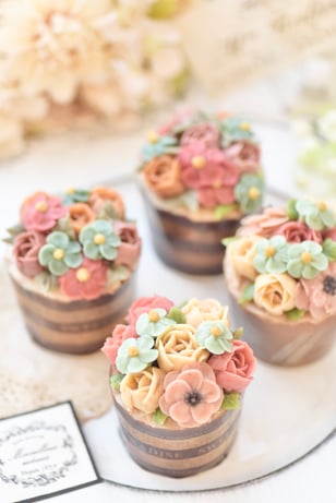 素材にこだわり、改良を重ねたオリジナルレシピのバタークリームは、100%純乳脂肪の上質のバターとふわふわのメレンゲを使用することで、口当たり軽く、飽きのこないお味にフラワーケーキを仕上げます。